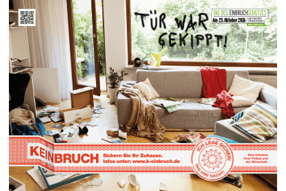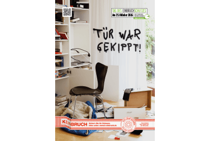 Unseren Partnern bieten wir Plakate (A0 und A2), Großflächenplakate sowie den Hinweisaufdruck „Tag des Einbruchschutzes“ als Druckvorlagen an. Die Vorlagen dürfen genutzt werden von